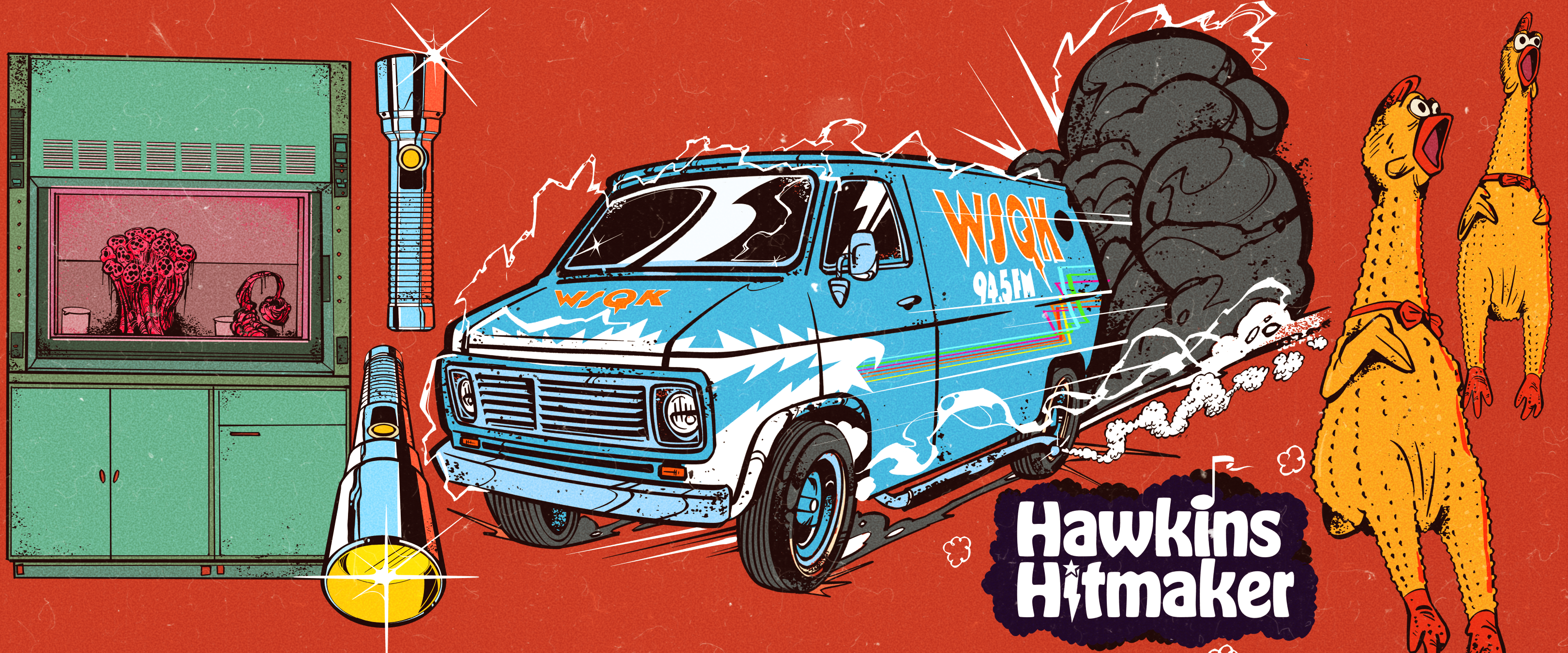 Over the next few months we made about 50 illustrations including characters, props and variations on the iconic Stranger Things logo in a 80’s horror comic style.